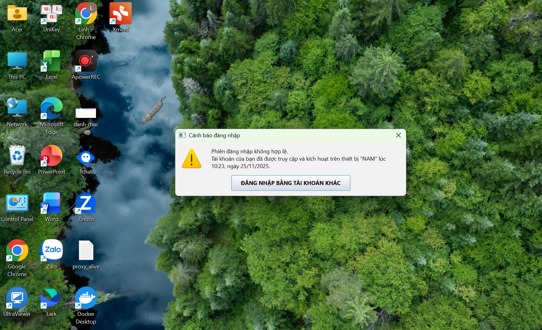Đồng thời, tài khoản zinbox đang đăng nhập trên thiết bị cũ sẽ bị thoát ra với thông báo: