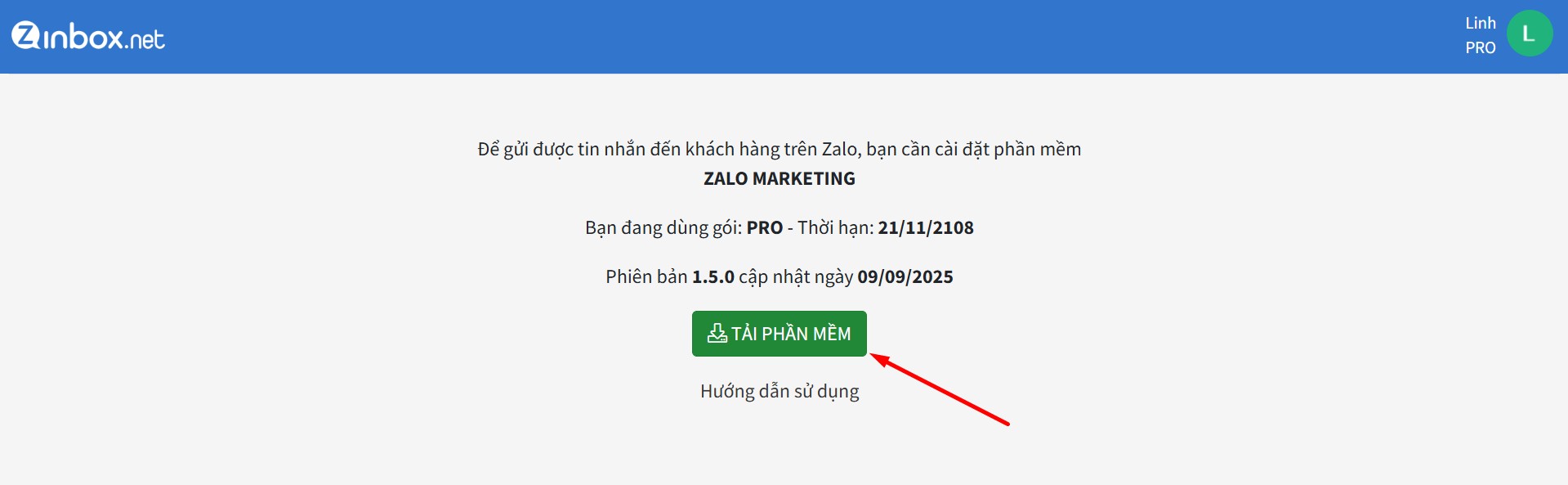 Sau khi tạo tài khoản Zinbox thành công, bạn cần tải và đăng nhập app trên máy tính để cài đặt gửi tin.